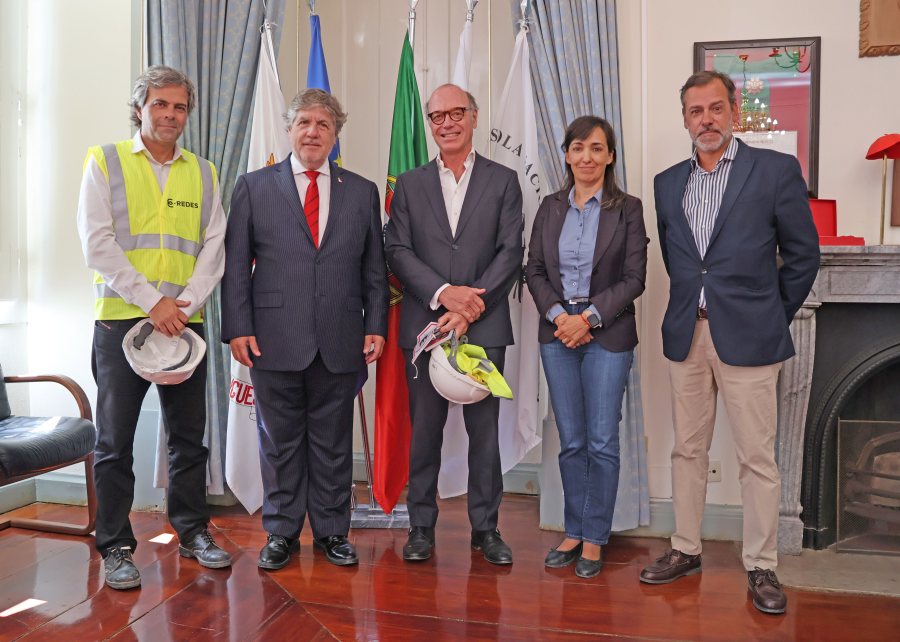 O Administrador da E-REDES, Carlos Pereira, e o Diretor, Miguel Santos, foram recebidos em Sintra pelo Presidente da Direção da ENB, Lídio Lopes, e a Vogal Gisela Meireles, antes do início do ensaio.