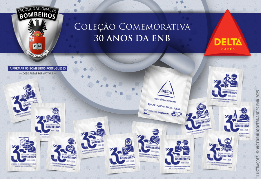 No seguimento das várias iniciativas desenvolvidas pela Escola Nacional de Bombeiros (ENB) para comemorar este ano o seu 30º aniversário, foi hoje lançada publicamente em Sintra a coleção de pacotes de açúcar comemorativa dos 30 anos da ENB, com a presença do Secretário de Estado da Proteção Civil, Rui Rocha, e do representante do Grupo Nabeiro – Delta Cafés, João Lobato, com o qual a ENB estabeleceu uma parceria para lançar esta coleção.